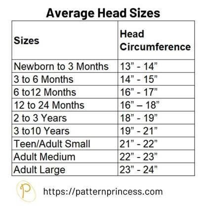 Measure as You Go. If you’re unsure about sizing, measure around the head so you know how big around you need it. If you are not sure of what size to make it. I have a standard head size chart to help you.