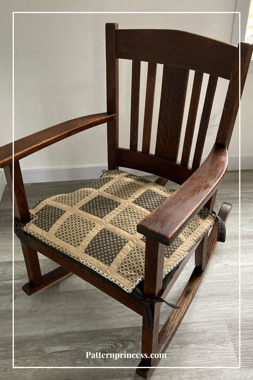 Make this by sewing squares together, adding sashing, padding, a backing fabric, and finishing with a binding for the edge and cute ties to hold it on. You can quickly stitch up something beautiful to turn your ordinary wooden chair into an elegant piece of decor.