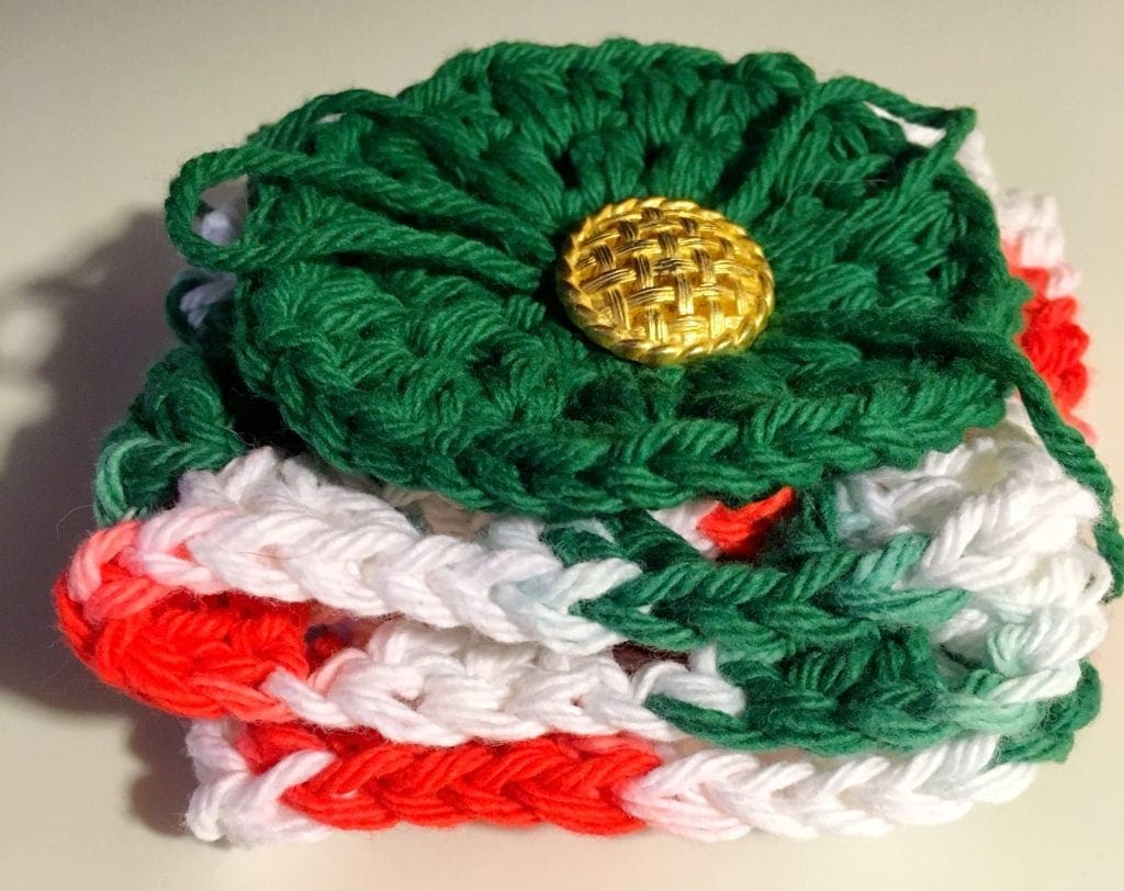 Thinking about crocheting a SPA gift set? Here is one done in Holiday colors.