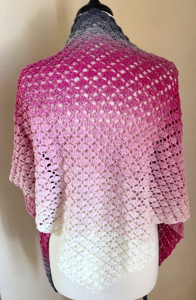 I love pink and grey colors together for baby blankets. However, until this crochet shawl, I had never combined the two colors for a wearable.