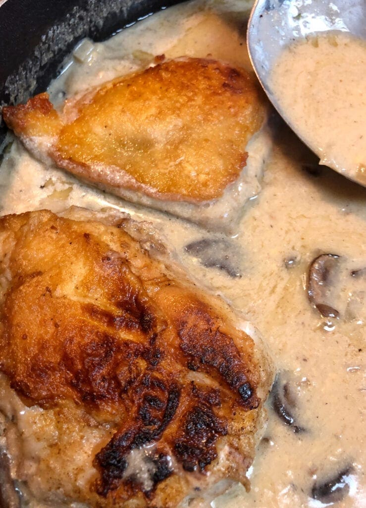 This skillet chicken and mushroom wine sauce delivers on crispy chicken paired with a delicious sauce. So easy and quick to achieve such a great meal.